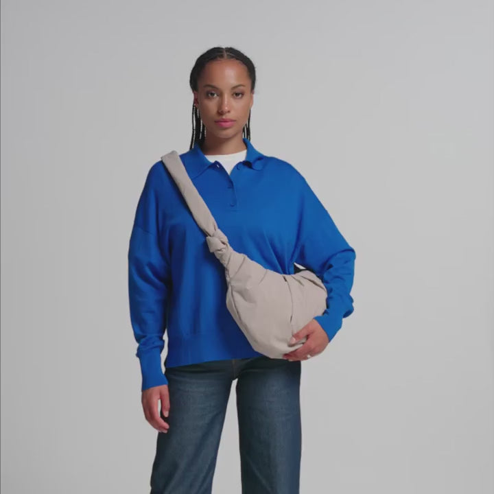 Die Pleat Moon Bag Large von GOT BAG ist ein 10-Liter-Raumwunder im ikonischen Moon-Shape. Die gefaltete Front verleiht ihr Struktur, das Knotendetail am Riemen sorgt für einen verspielten Akzent – klar im Design, aber nicht kühl.